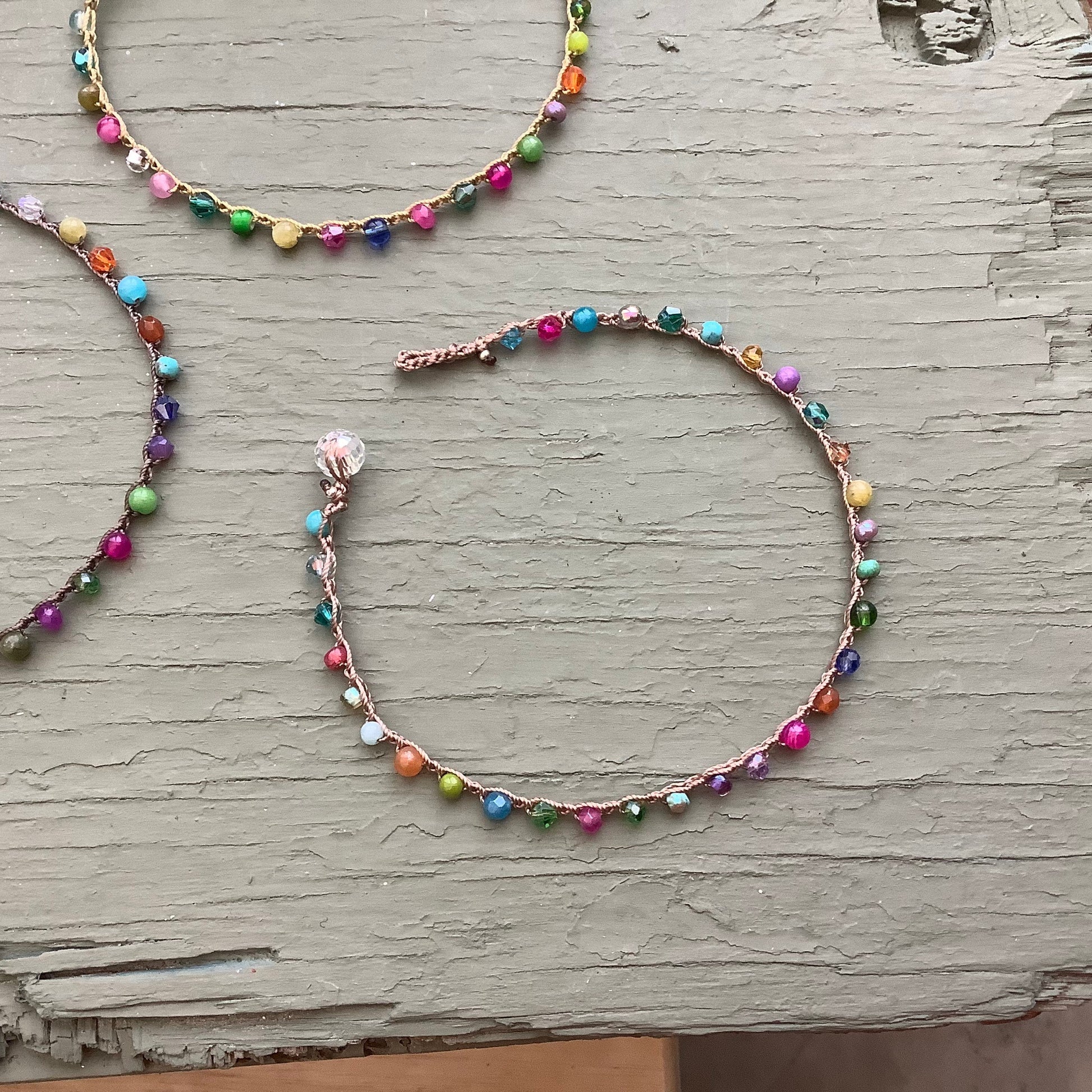 These little anklets are hand crocheted with crystals, gemstones, with on a strong cord, super cute and one of my best summer sellers .. in a variety of pretty colors.. Please choose cord color upon checkout - if you don’t see the cord colour you like I have every colour you can imagine😀 so just message me and I will make it up for you..