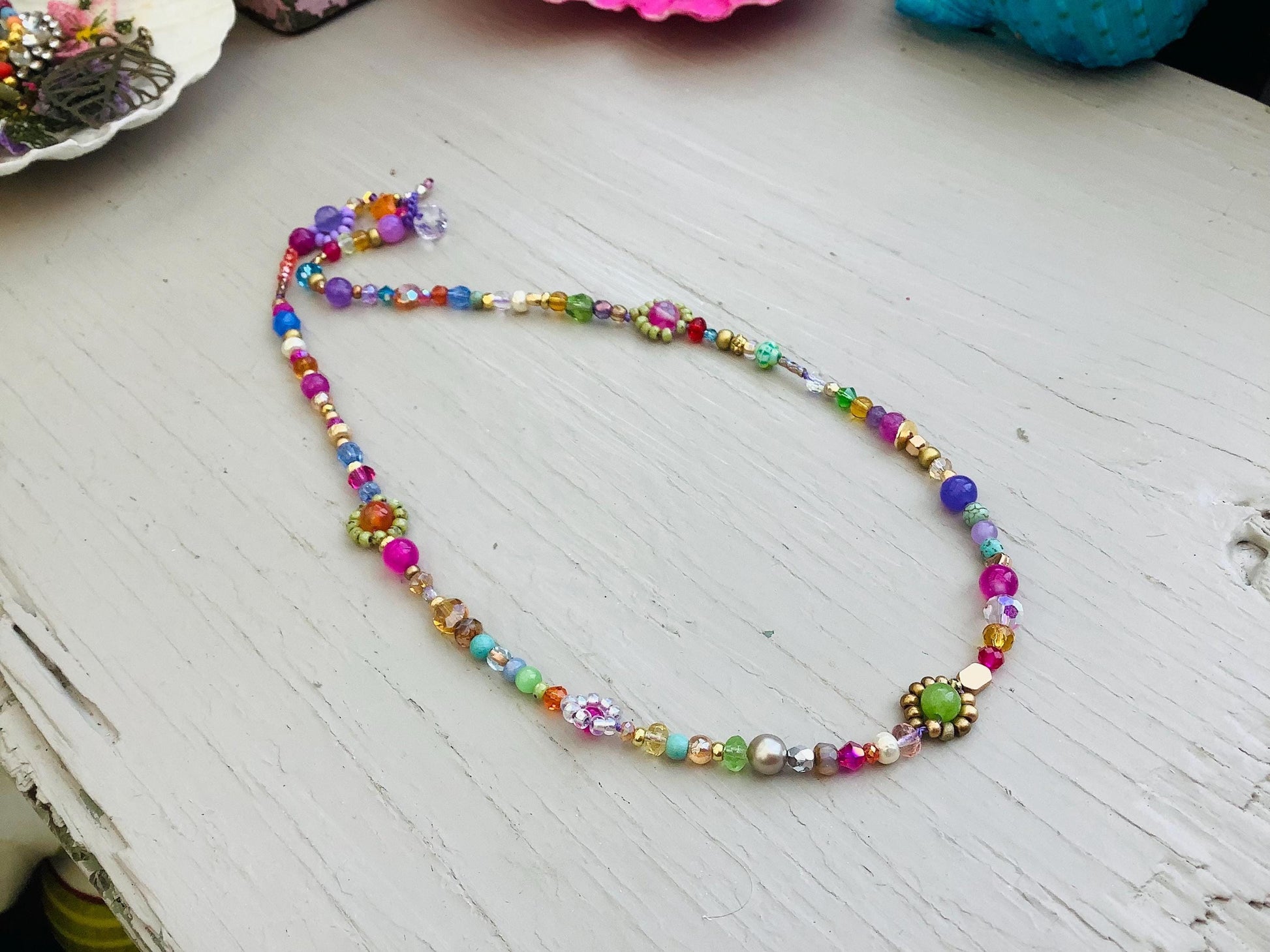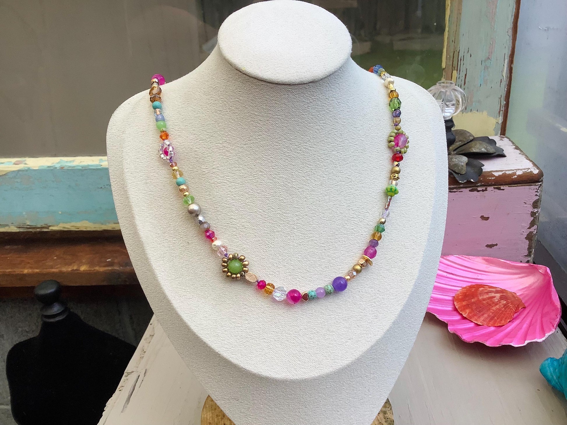 Daisy Pearl Beaded Necklace: Jasper, Amethyst, Agate