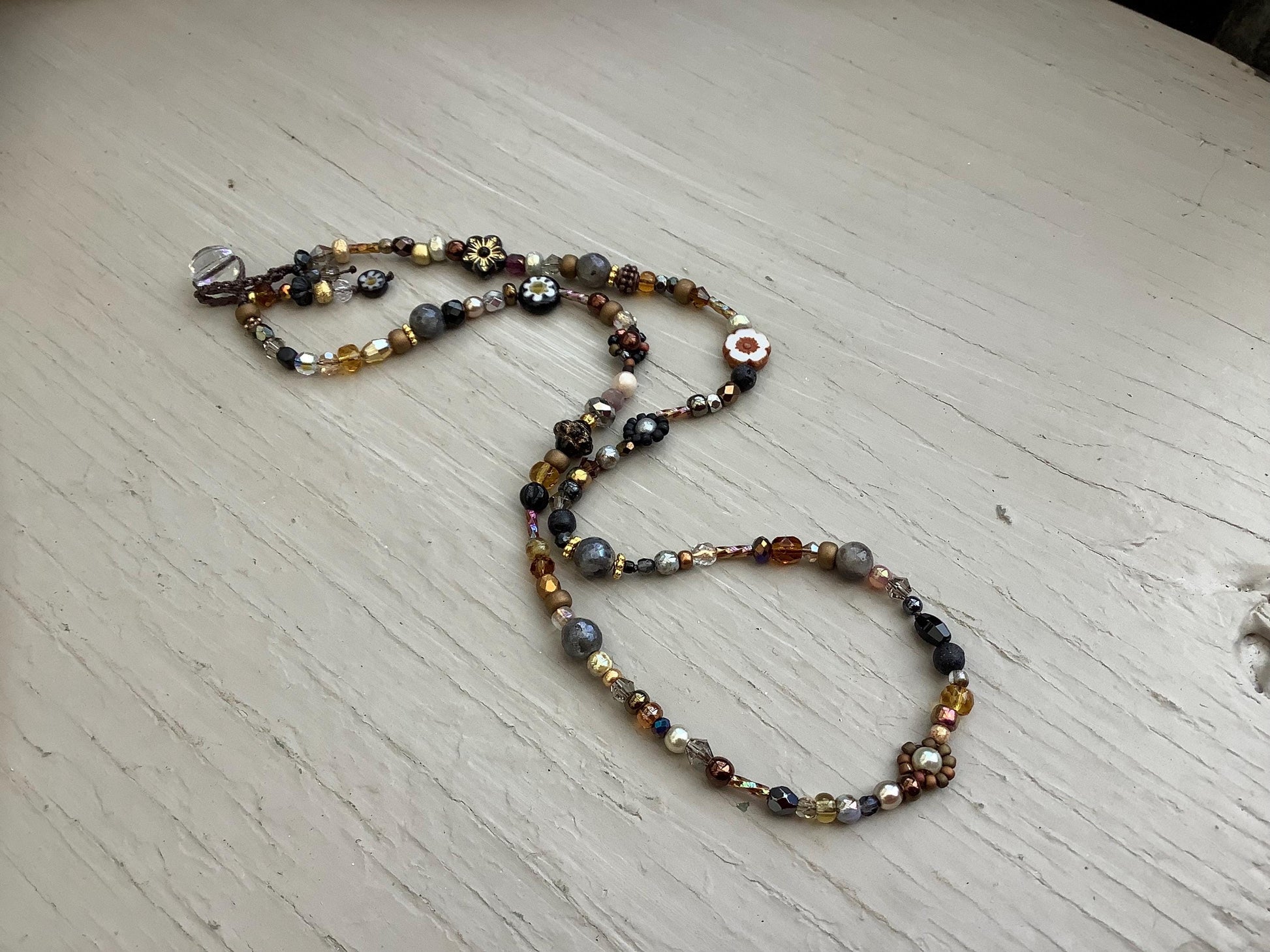 This was such a fun project to make , I love red and purple together and have been loving adding flowers to my jewelry lately this one is a mix of red jasper, amethyst and green agate mixed with citrine glass beads and some pearls.. they are all approx 19”.5 ish .. I hope you find it fun to wear!