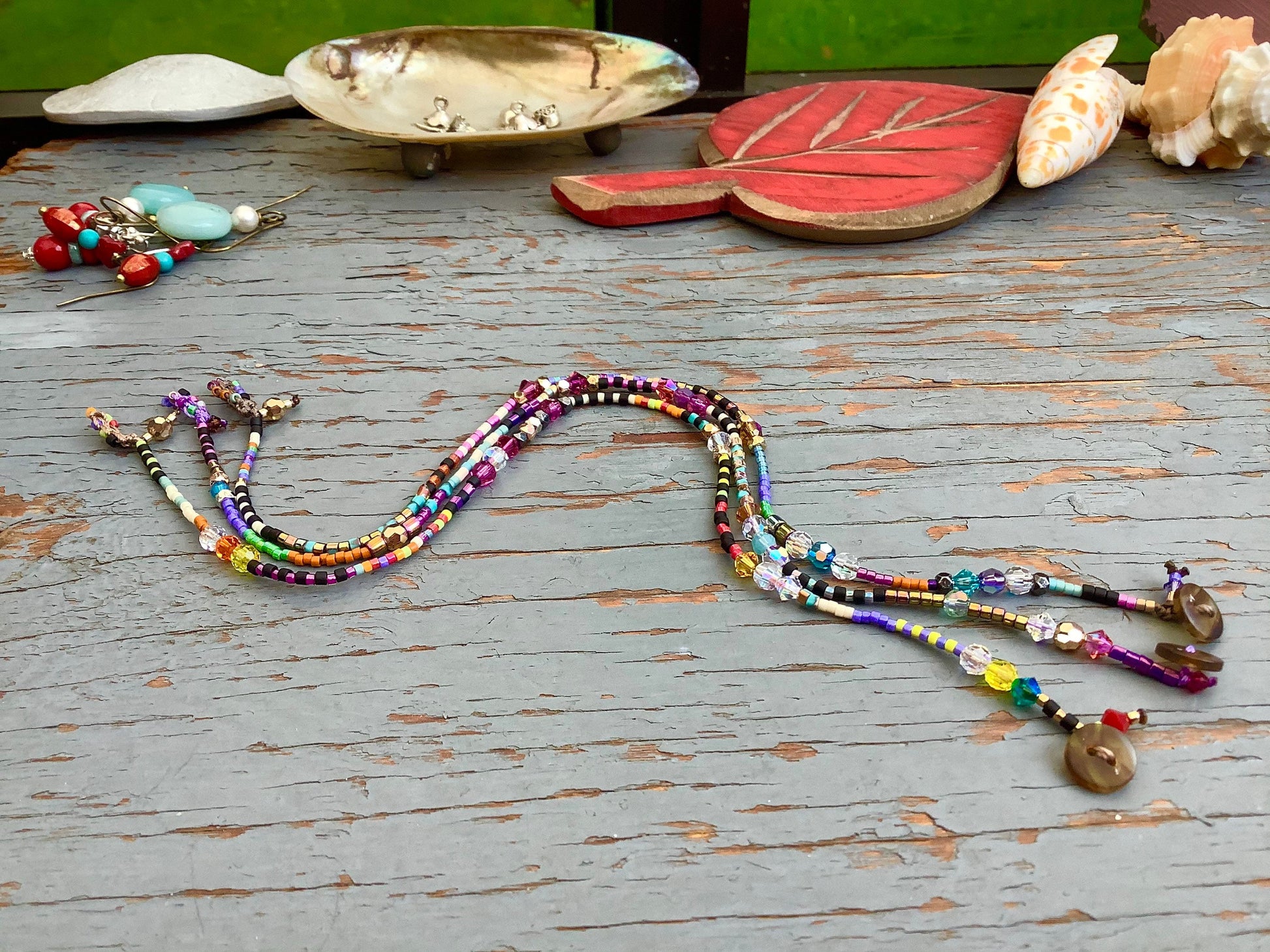 This anklet is made with all beautiful tiny miyuki fine glass beads, I really love stripes mixed with bright color,I used more dainty beads on this one as compared to my original Rio anklets, these are made with dainty delica beads with Swarovski and czech crystals as well as other beads and tiny gemstones dotted throughout, like ruby, emerald, Jade, carnelian, turquoise and Jasper.. 😄