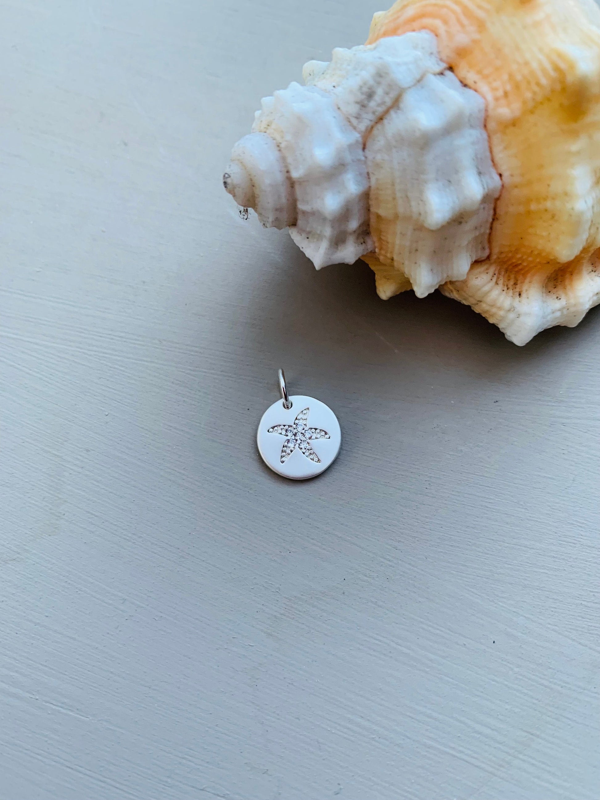 This cute necklace is crocheted on antique brown cord with 4MM beautiful white mother of pearls with a 14k gold plated or sterling silver plated starfish pendant.. it’s approximately 18- 19 “ .
